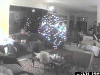 Previously, the LivingRoomCam displayed the domestic habitation of an American family. With the coming of the Christmas season, decorations and the holiday spirit fill the house to convert us into the third annual Christmas Cam. (We're one of the real Old Timers when it comes to home cams on the Web.)